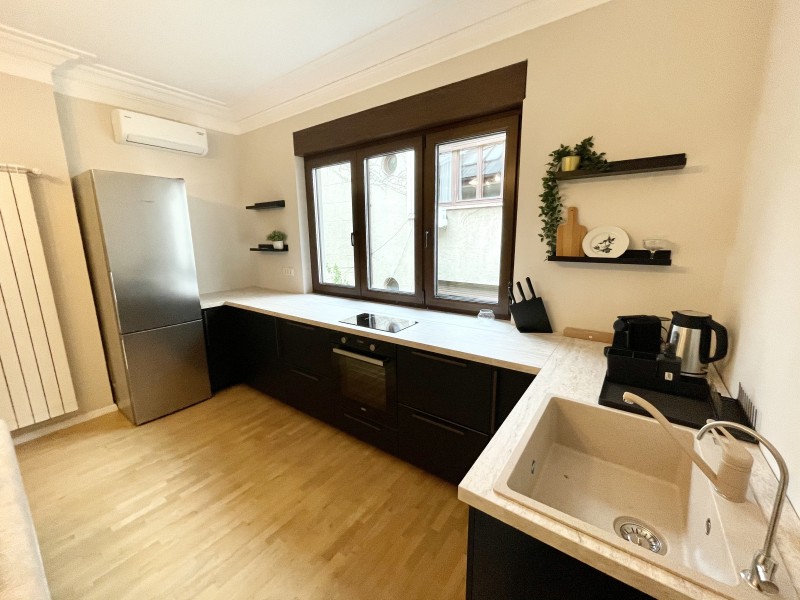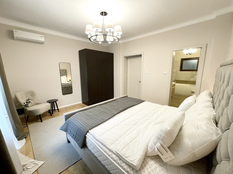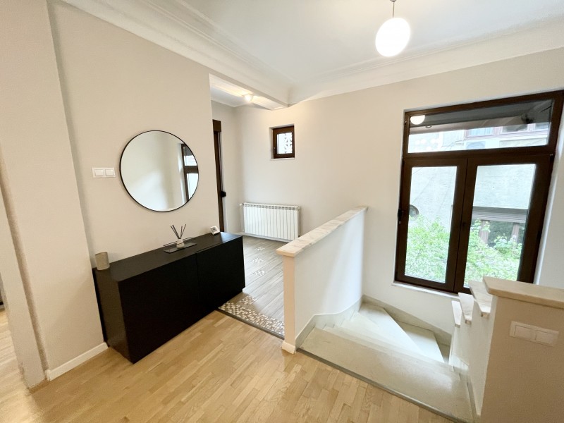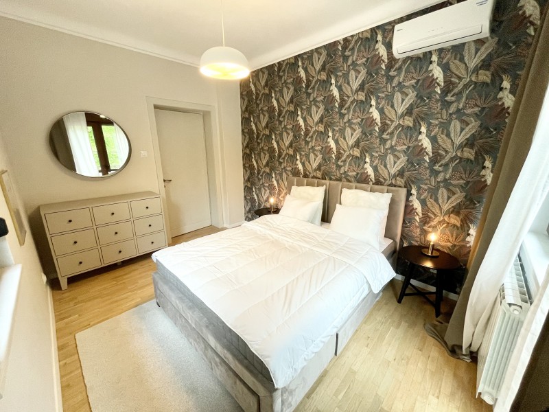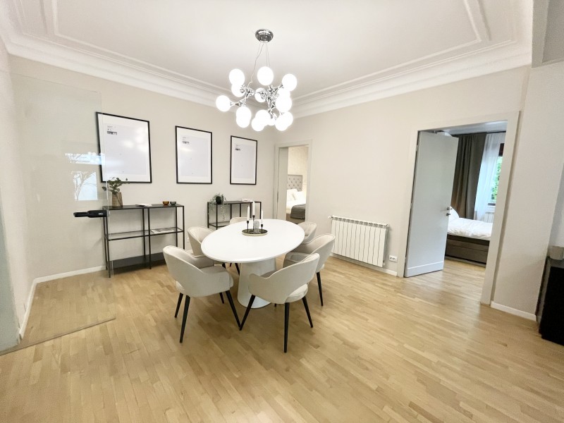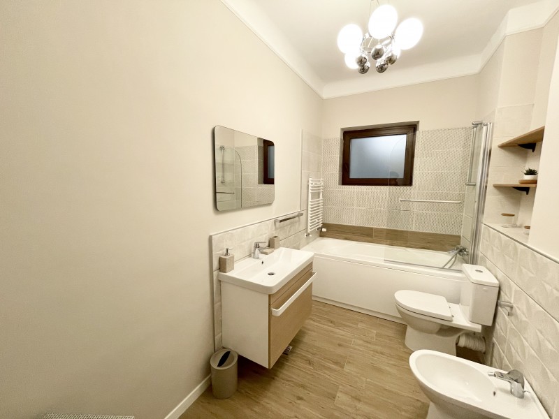 This amazing flat is located at the first floor of a charming villa which was completely refrubished in 2017. There is an apartment on each level, with separate entrances and they all benefit of a nice common yard. Not to mention the amazing position, facing Kiseleff Park, the apartment is fully equipped and can be furnished upon request.