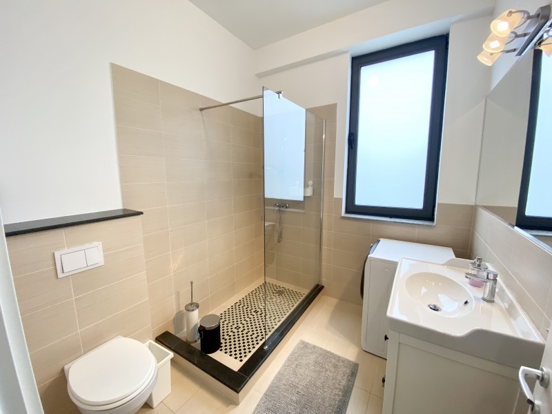 The apartment is in a brand new building and has a very smart layout. One bedroom, open kitchen and one bathroom, with an usable area of 60 sqm. Fully equipped with A/C appliances, internet connection, TV cable, intercom, telephone, heating system, alarm system.